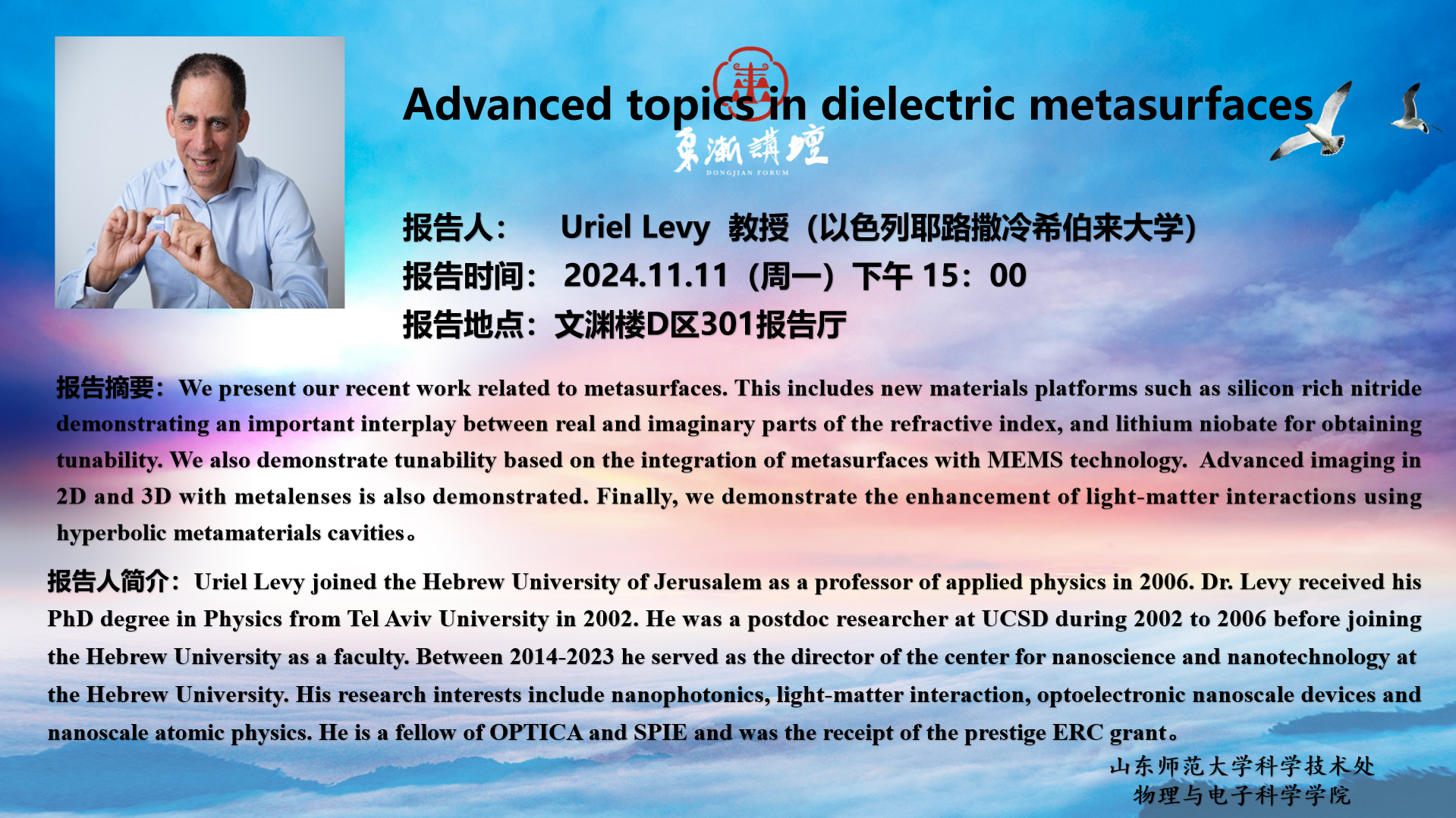 “东渐讲坛”第三十八讲:Advanced topics in dielectric metasurfaces
